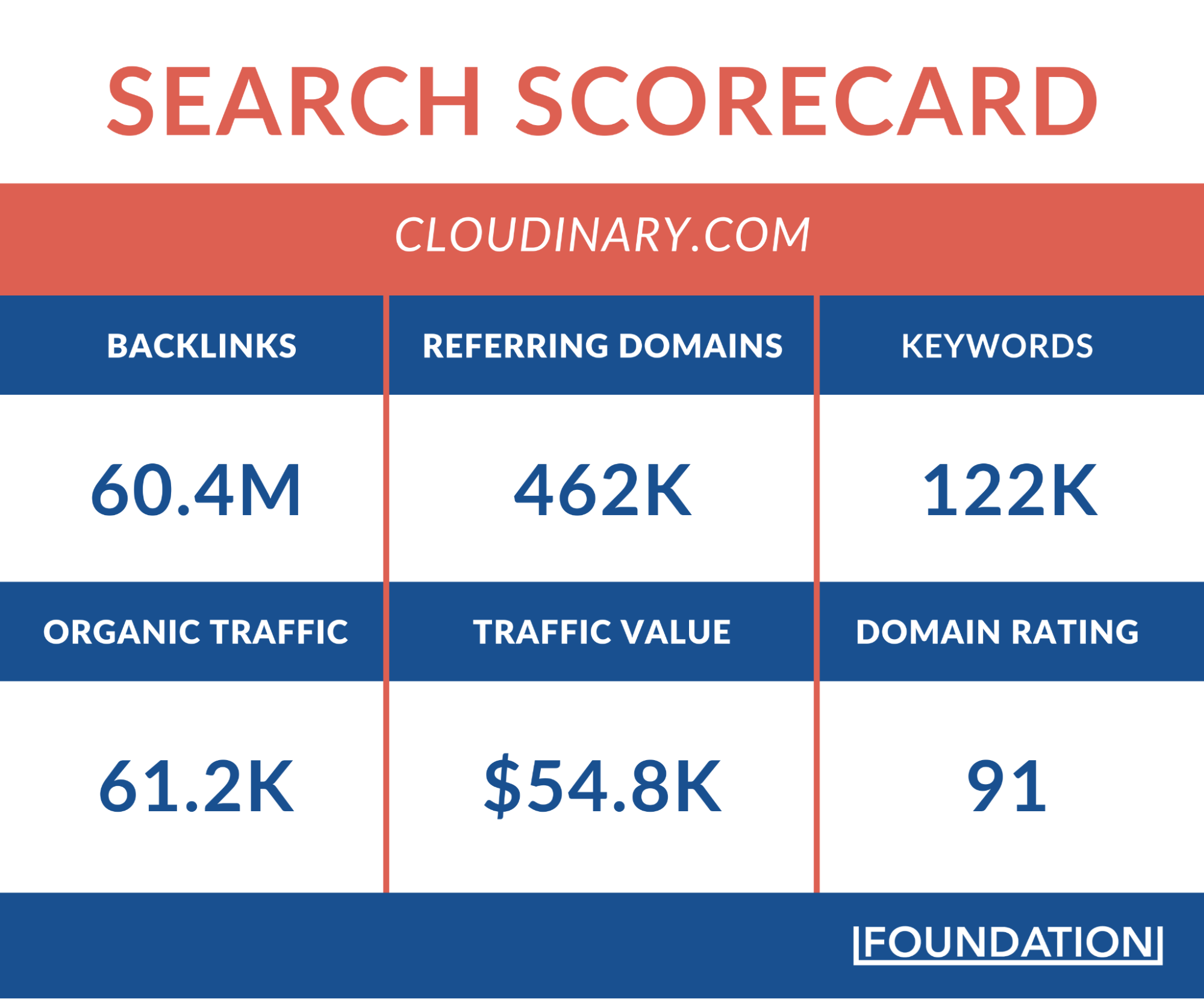 Cloudinary’s search scorecard isn’t nearly as impressive as many companies we’ve analyzed in-depth; however, its growth shows solid potential. For example, its monthly organic traffic has grown steadily from 17,500 to 60,000+. That’s nearly 4X growth in just two years.