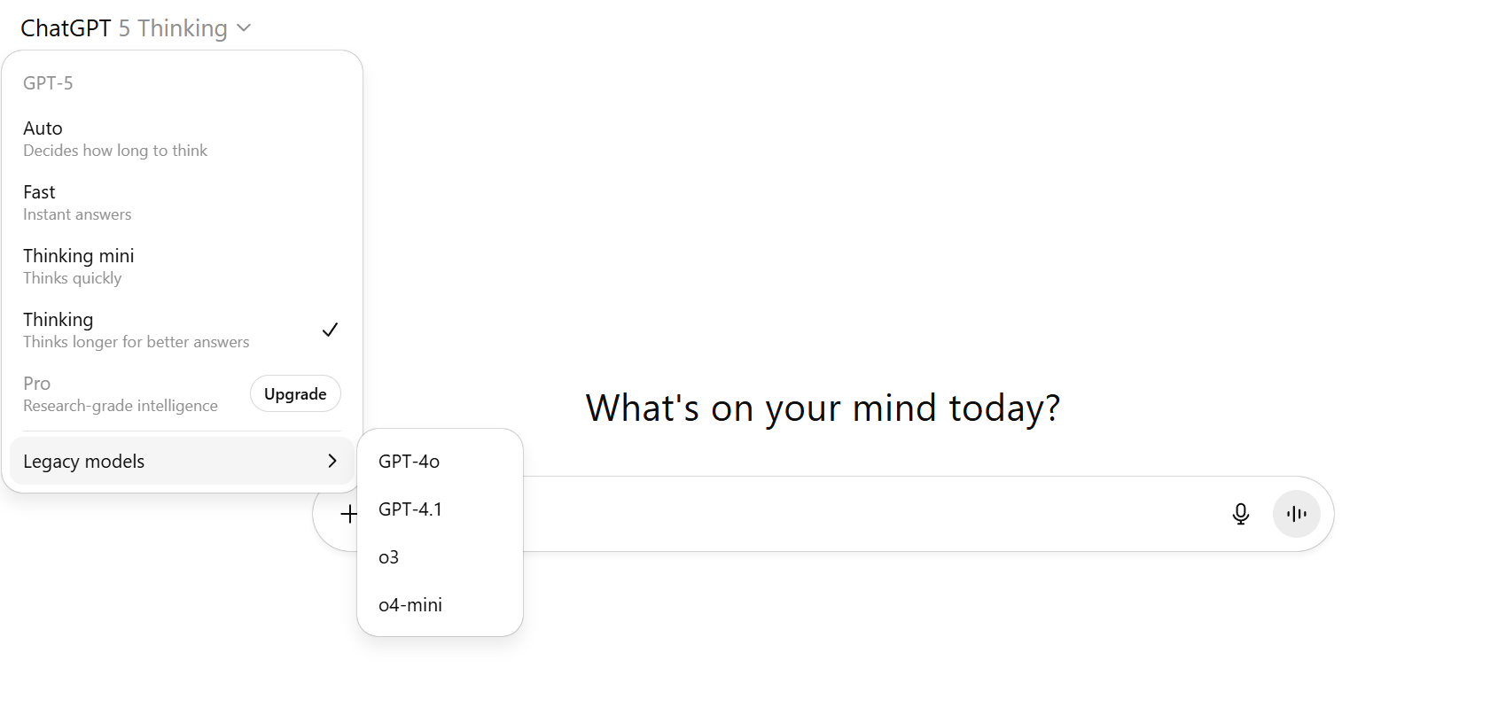 You can now choose between “Auto”, “Fast”, and “Thinking” for GPT-5. Most users will want Auto, but the additional control will be useful for some people.