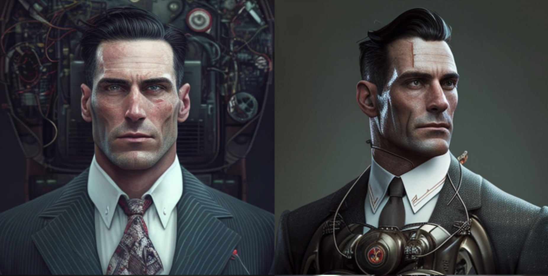 All I had to do was ask MidJourney to create a realistic version of Don Draper as part robot or cyborg, and within seconds, I had a selection of images to choose from.