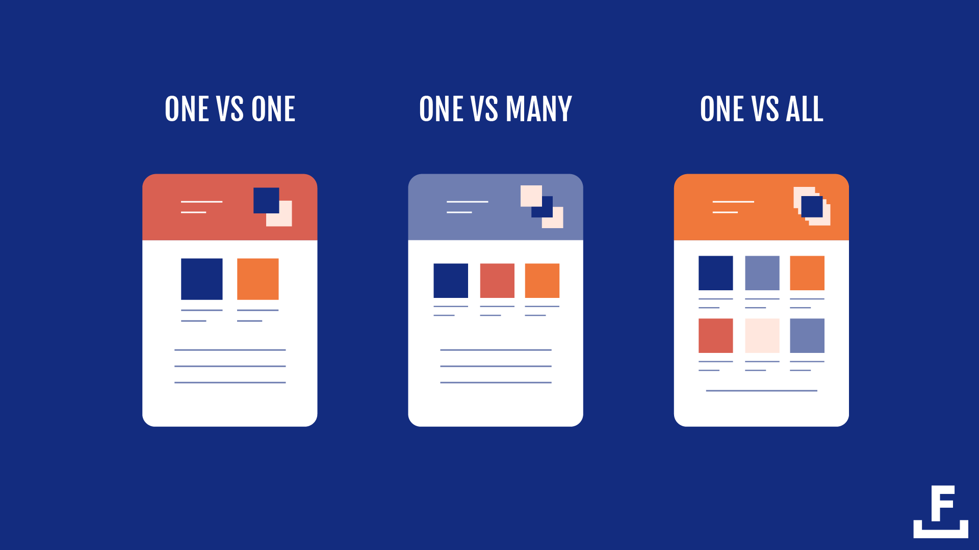 Aside from looking at the specific components of comparison pages, there are variations of flavours of comparison pages that SaaS companies typically use: One vs. One, One vs. Many, and One vs. All.
